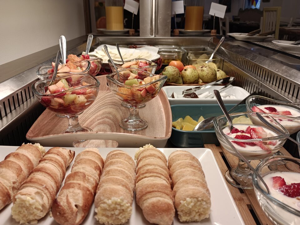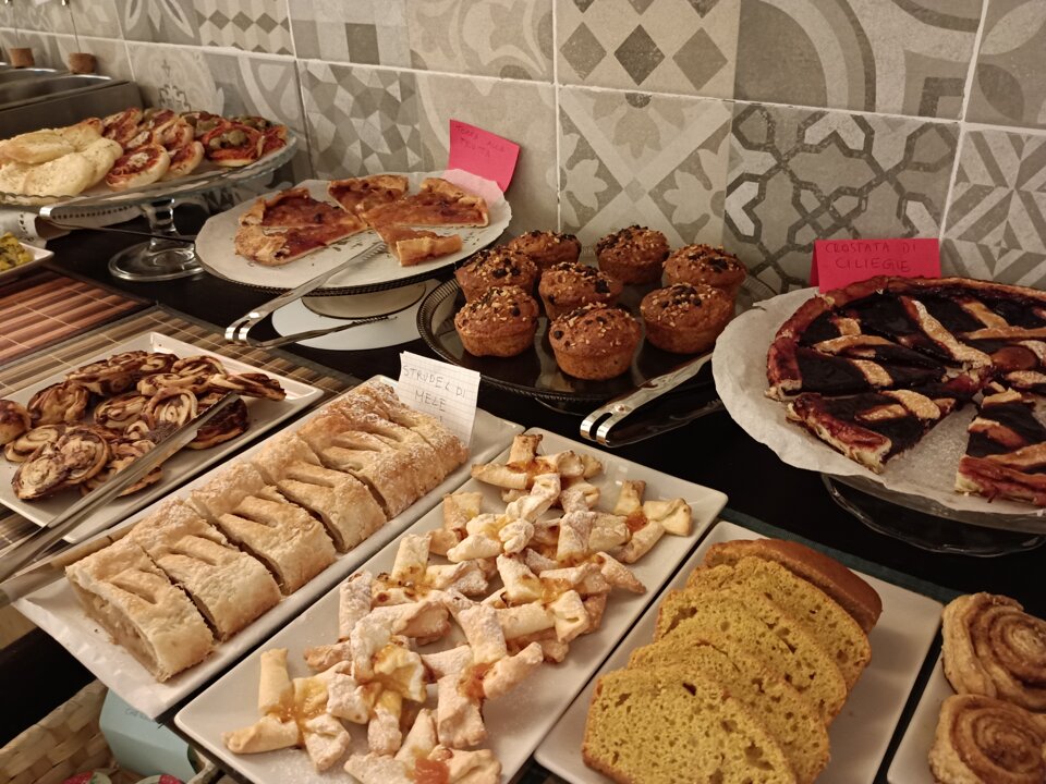 For breakfast you can choose from a wide choice of ingredients which include fruit, soya or coconut yoghurt, granola and seeds, jams, cocoa, hazelnut and peanut creams, biscuits, crackers, bread, toast, pizzas, potato tortillas, tofu and tempeh, homemade seitan and vegetable cheeses, scrambled tofu, savory pies filled according to the season and our desserts: cakes, tarts, muffins, strudels, banana bread and the inevitable brioches! Flavored water, 100% fruit juices and much more, with an eye also for those allergic to gluten: we always have gluten free options among our offers. Based on the seasonality of the products, we like to make you try new flavors so you will find always in addition to some traditional dishes, there are also some ethnic dishes. The cappuccinos are made with soy or almond or oat or rice milk, in short there is plenty of choice and for all tastes!!